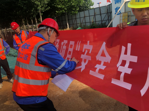 本次宣誓活動由項目部安全環(huán)保部部長主持,她向現(xiàn)場人員宣讀了中國二冶集團安全施工要求,就幾點注意事項做了重點強調(diào),要求管理人員必須加強對各位施工人員的管理工作,落實好實名制通道管理;每日對現(xiàn)場道路進行拍照和檢查,完善每日日報,并對公司安全檢查小組提出的整改意見,加強整改落實。宣讀完畢后,項目經(jīng)理帶領(lǐng)項目部全體管理人員與施工工人舉起右拳莊嚴宣誓。宣誓過后,管理人員與現(xiàn)場施工工人共同在橫幅上簽名。