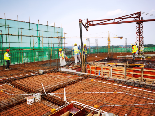 6月12日,伴隨著B04-5樓主體頂層混凝土的澆筑,由中國二冶承建的智創產業空間總承包工程順利進行首棟樓主體封頂澆筑!