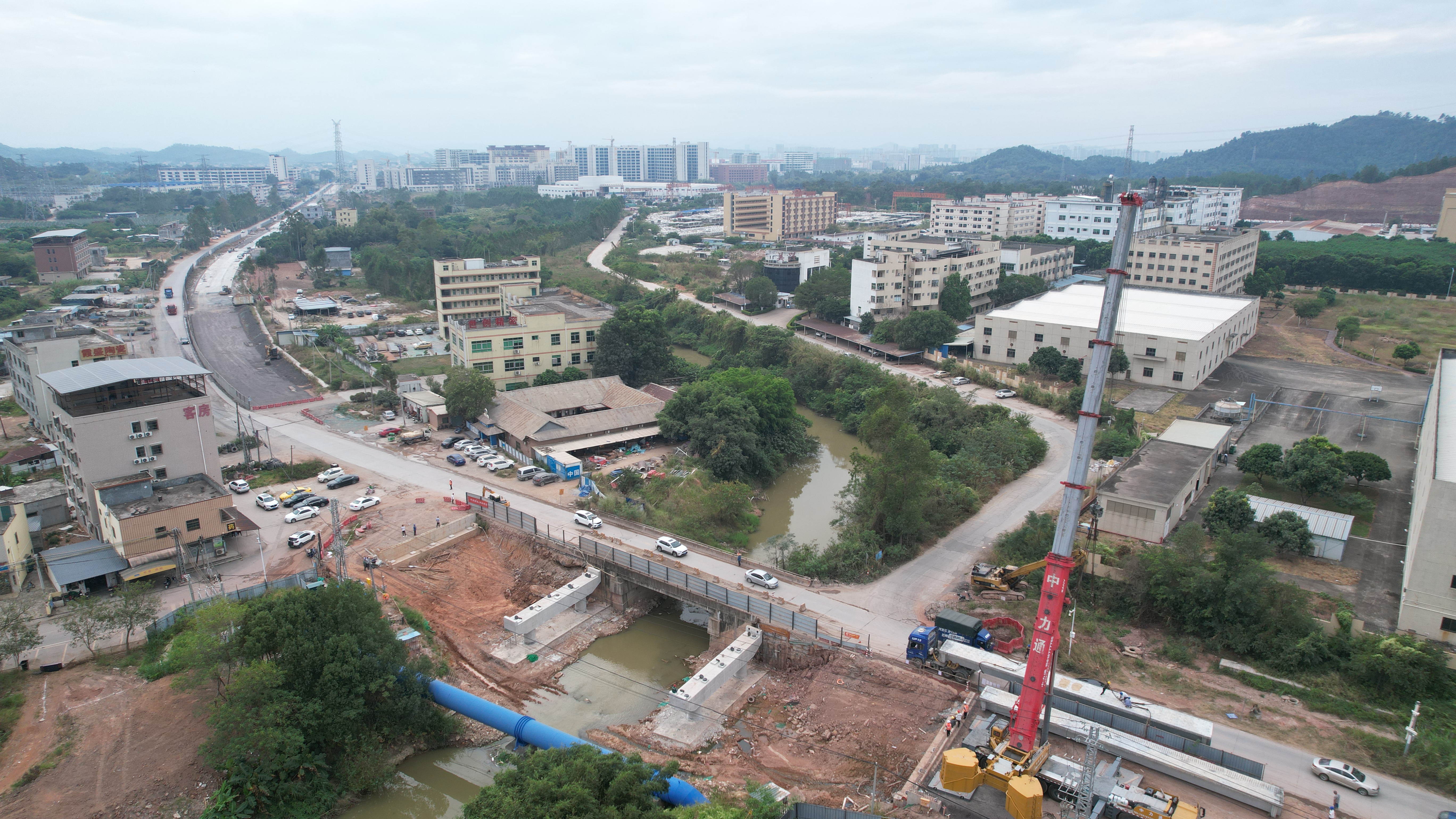 本項目是東江灣產業園南北縱向主要交通干線,是水口東部 “四橫三縱” 路網布局“縱線—馬水路”中一段,霞村中橋左幅為3×25米預應力混凝土預制小箱梁,先簡支后橋面連續,橋長80.68米。項目建成后將有效緩解沿線交通不便的現象,其作為惠城區東江灣產業園縱向干線路網的重要組成部分,將加強園區南北產業園交通聯系,加快園區內產業發展布局。
