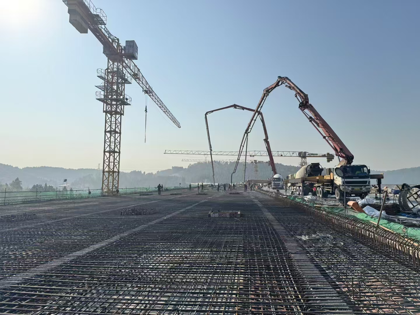 本次黃桑園大橋現澆段澆筑圓滿結束,有力地推動了項目進展,為項目部全體職工沖刺通車目標凝聚士氣。