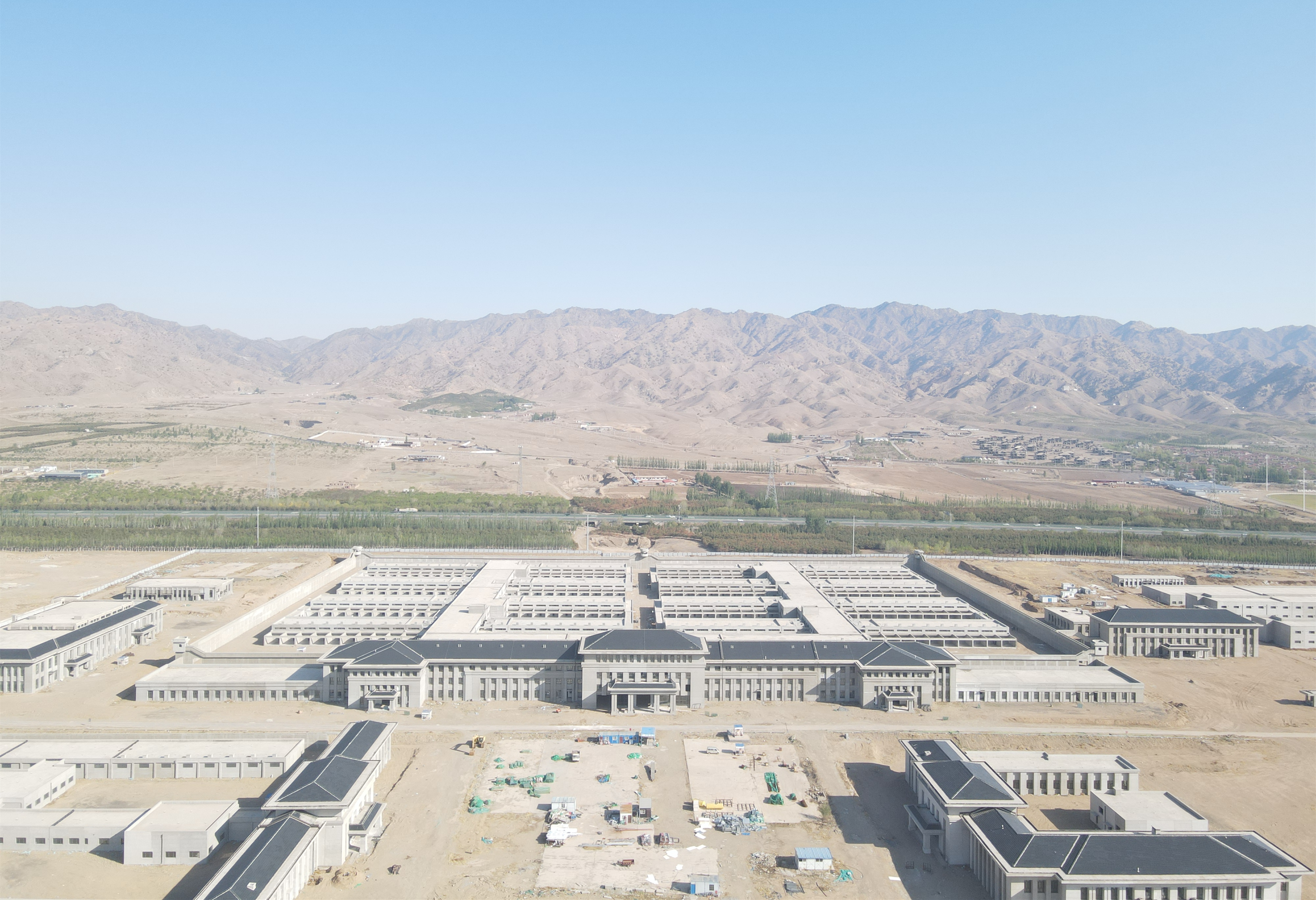 本項目坐落于包頭市九原區哈業胡同鎮烏蘭計六村,坐落于陰山腳下,北臨京藏高速,南臨110國道,總建筑面積105583.6平方米。主要包括1#和2#看守所、3#禁毒所、4#拘留所、5#醫療樓、6武警營房、7#武警伙房、8#武警訓練館、9#武警哨位、10#伙房、11#和15#、16#設備用房等單體工程。工程進入墻面和地面兩大施工節點后,項目部突破墻面抹灰、地面混凝土澆筑任務繁重,安全風險大,交叉作業頻繁,施工質量要求高等難點,節日不打烊,采取24小時作業不停步等施工方法,持續加快工程建設步伐,相繼完成16個單體工程的墻面和地面施工任務。