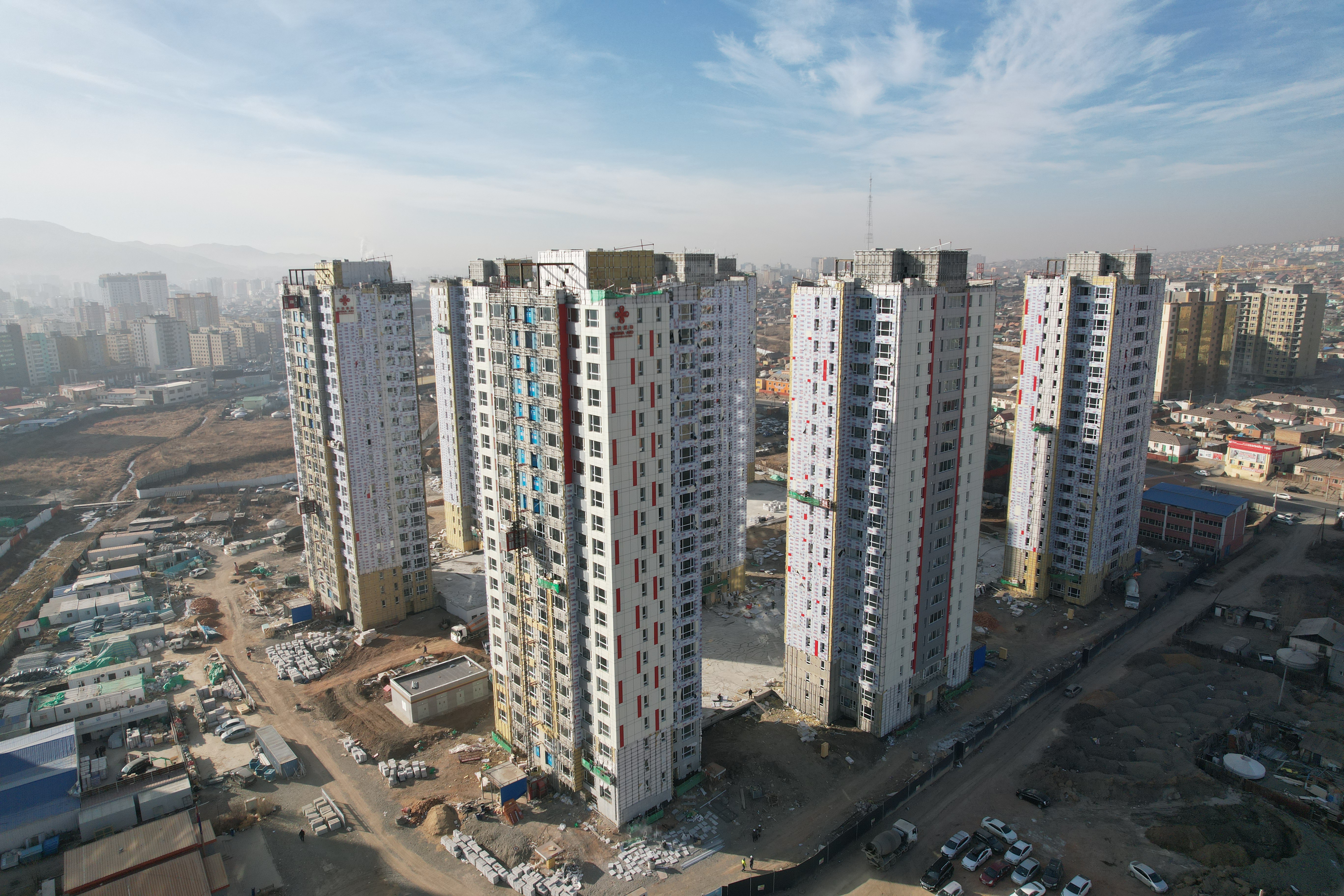 3月6日,城建分公司蒙古國(guó)棚戶區(qū)改造項(xiàng)目外墻裝飾施工任務(wù)全部完成。