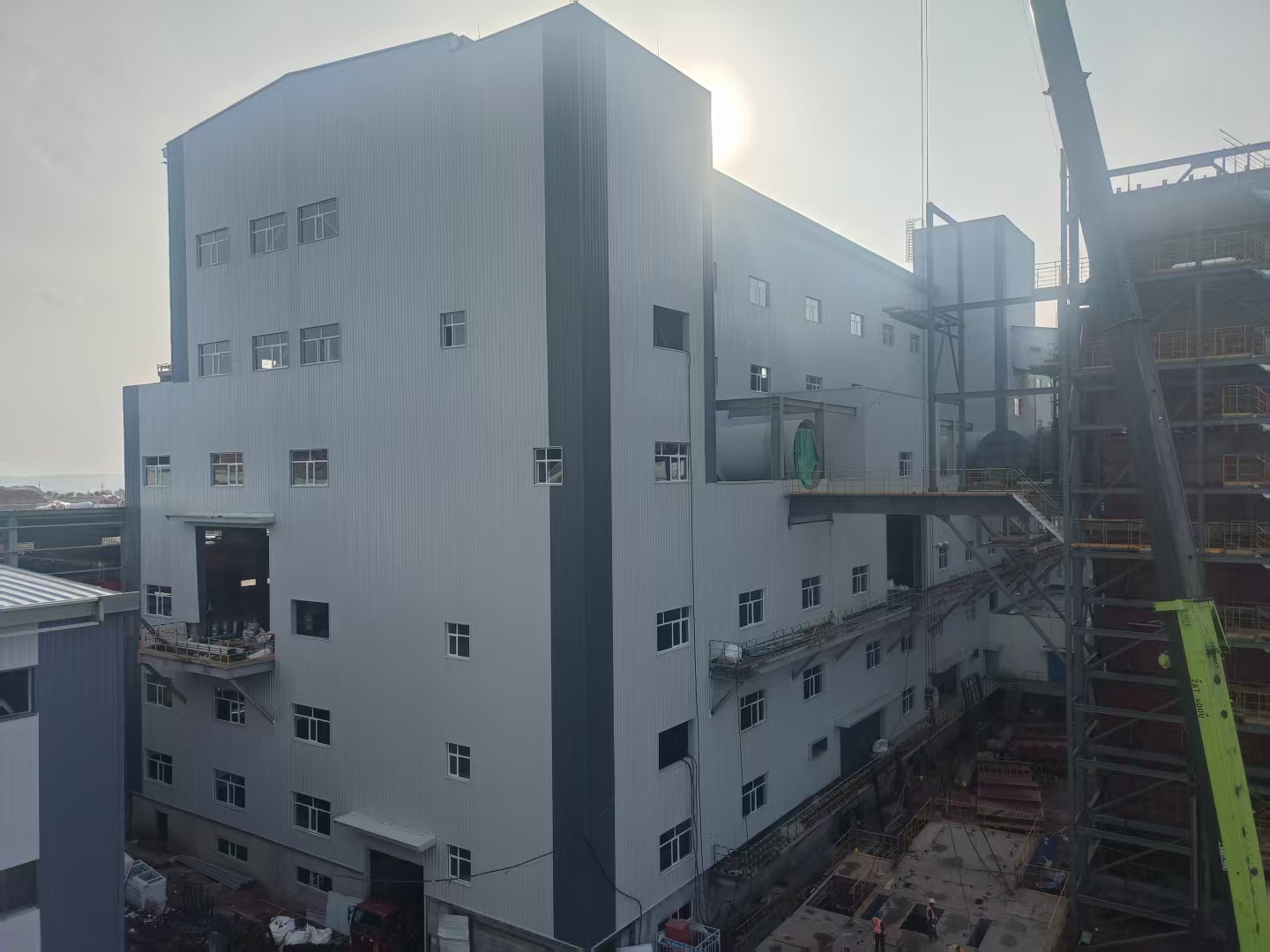 匯能硅鋁項目緊扣國家“雙碳”目標,將綠色理念融入發(fā)展實踐,持續(xù)探索以生態(tài)“含綠量”撬動發(fā)展“含金量”。其中,礦熱還原工程建筑面積4891平方米,長146米,寬33.5米,高45米,六層鋼結構,是本項目最大的主廠房。施工過程中,針對礦熱還原工程施工戰(zhàn)線長、混凝土澆筑體量大、施工工藝復雜等攔路虎,項目部團隊提前優(yōu)化施工組織設計和施工方案,強化質(zhì)量巡檢、材料進場檢驗、安全每日監(jiān)管頻率,通過分區(qū)突擊、“土建+專業(yè)”工序有效銜接、增派專業(yè)隊伍、實施進度日考核等舉措,集中優(yōu)勢資源攻堅推進,確保礦熱還原基礎在26天內(nèi)完成,主體結構177天完成,跑出施工加速度。在此基礎上,項目部搶抓黃金施工期,節(jié)假日不停步,提前完成二次維護、裝飾裝修等關鍵節(jié)點,土建工程就此全面完成。