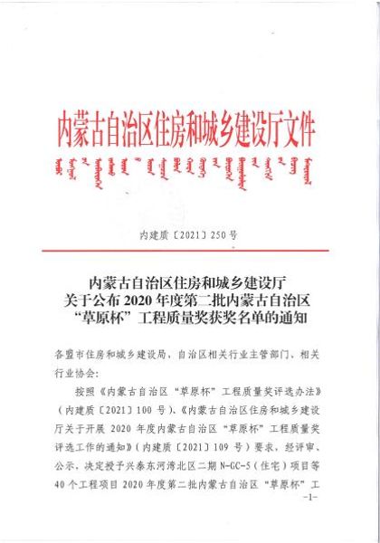 “草原杯”工程質量獎是內蒙古自治區建筑工程最高獎項,歲末年終之際獲此殊榮,有效地推動了企業品牌建設,為公司實現區域滾動發展奠定了堅實基礎。
