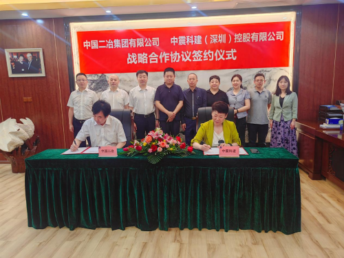 5月11日,中國二冶與中震科建(深圳)控股有限公司簽訂戰略合作協議,徐永鋒與中震科建(深圳)控股有限公司董事長馮宏娟代表雙方簽署協議。
