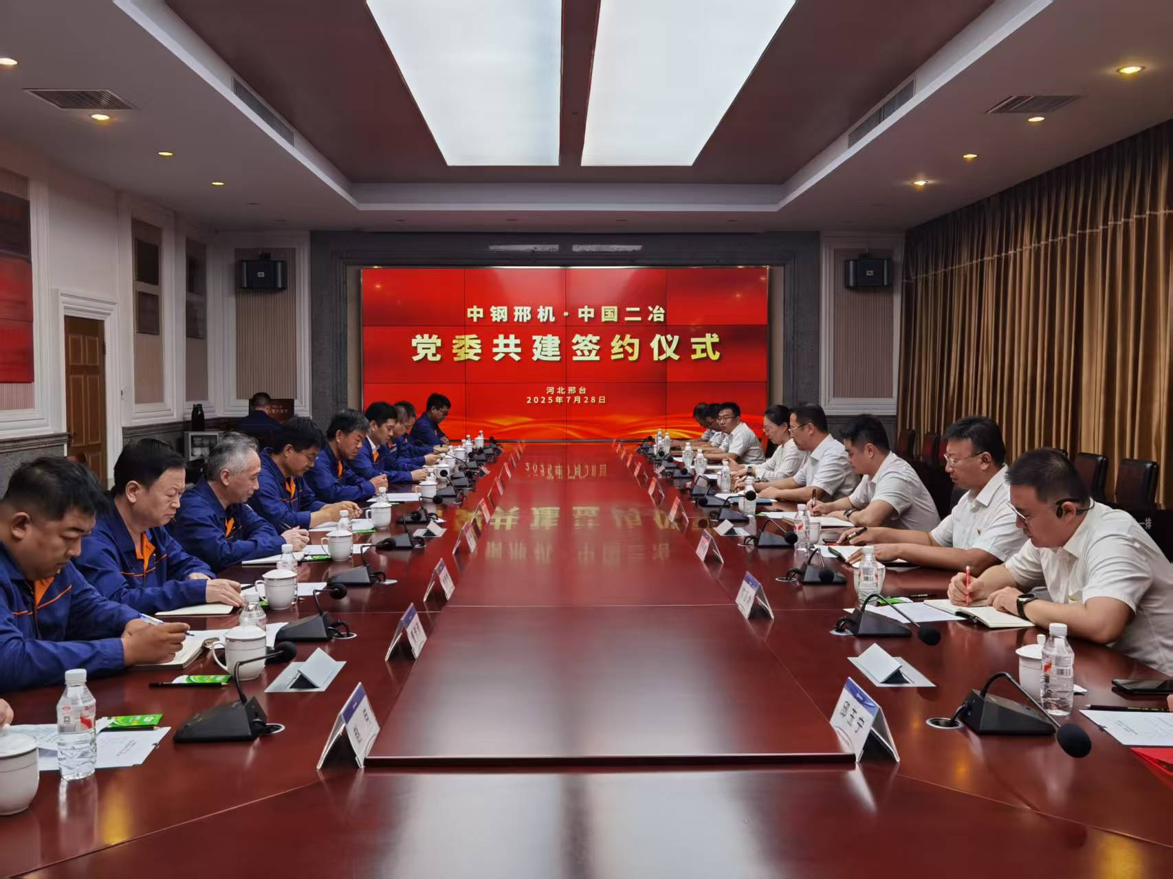 中國二冶是具有“四特四甲”資質的大型綜合企業集團,中鋼邢機是目前引領行業發展的冶金軋輥專業研發制造企業。雙方均為世界500強企業的旗下成員,擁有近70年的發展歷史和享譽各自行業的輝煌業績。雙方在友好合作的歷史基礎上,此次再度牽手“中鋼邢機軋輥產業園優化項目”,通過組織聯建、思想共融、資源共享,帶動共建雙方提升工作效能、優化營商環境,以堅強政治保障助力中鋼邢機新工廠建設項目的安全、優質、高效推進,為寶武智維、寶武重工加快打造國際領先的軋輥優勢產業集群,鞏固中國軋輥技術國際領先地位,支撐中國寶武全球供應鏈建設賦能。