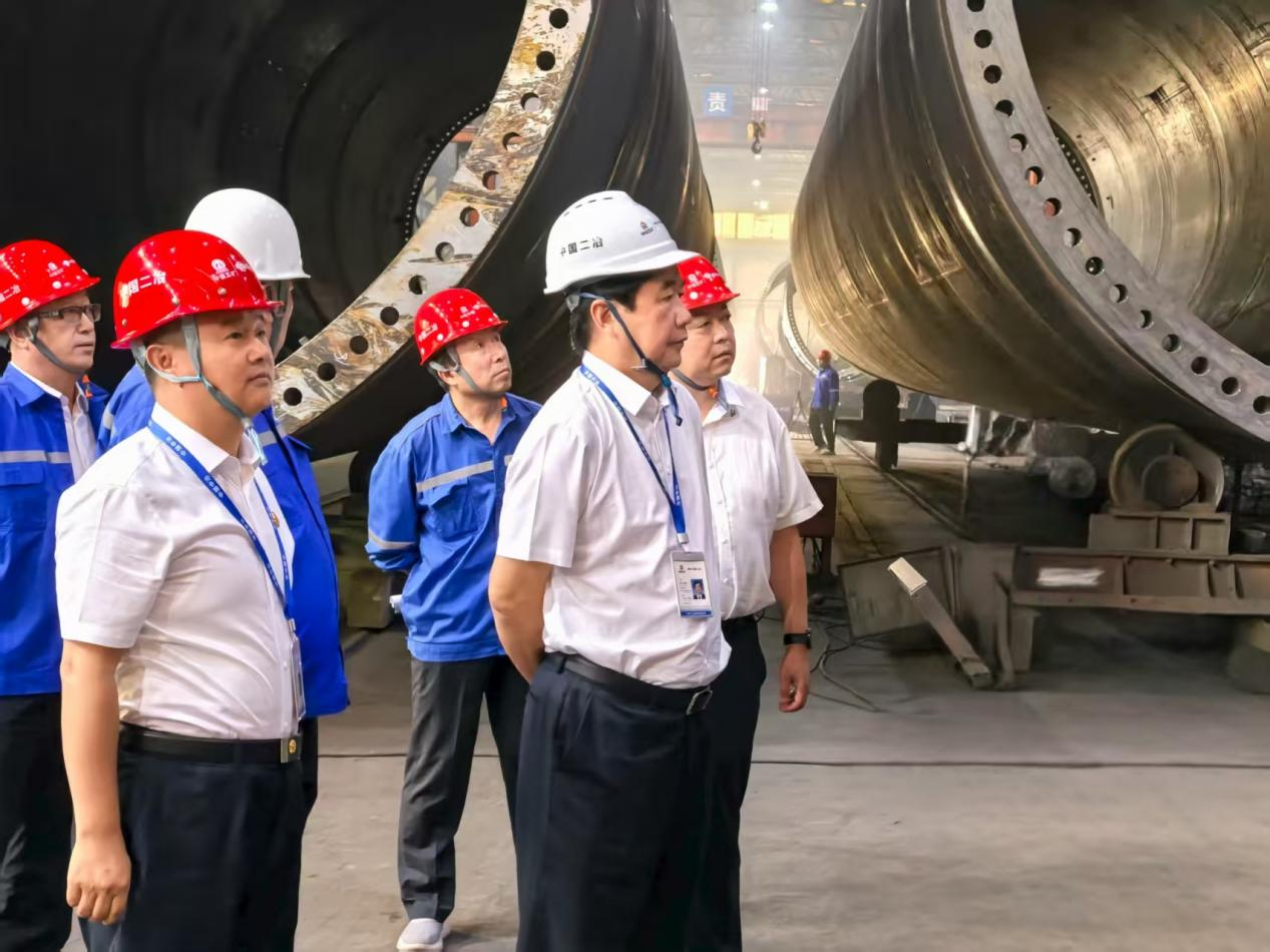 調研過程中,徐永鋒首先深入生產一線,詳細了解當前生產進度、設備運行狀態及人員配置情況,重點就風電塔筒在成本控制、資源高效利用等方面的具體舉措進行了解。